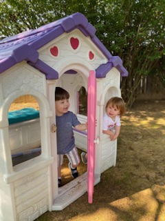 Cy makes a bee-line for her whenever she is out. First, he loves Bev, and second, he loves popsicles. She is that neighbor, who hears the babies screaming and comes over in her unassuming way and offers to hang out for a while, or to take Cy for a walk. She is always uncovering toys and wonders her kids and grandkids no longer need: a bouncy house, and the best thing ever, a play house with doors and windowsills. Cy loves it and he “mows” the grass around his little castle almost every day.